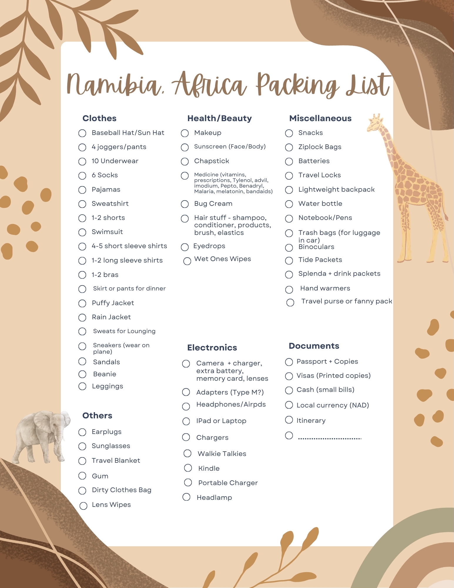 The ultimate efficient packing list for traveling to Namibia, Africa in just a carry-on